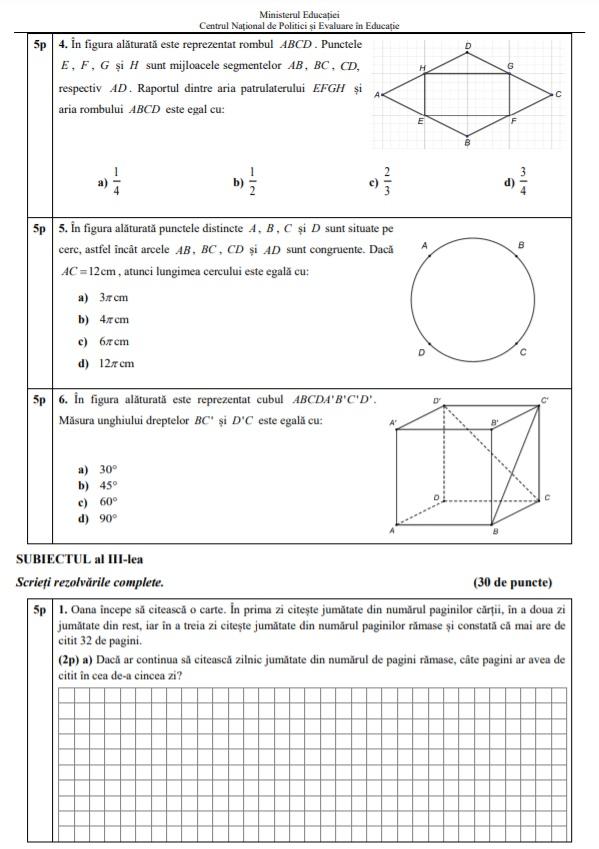 Centrul național de politici și evaluare în educație a publicat subiectele și baremele la simularea de la matematică.
